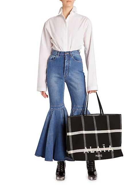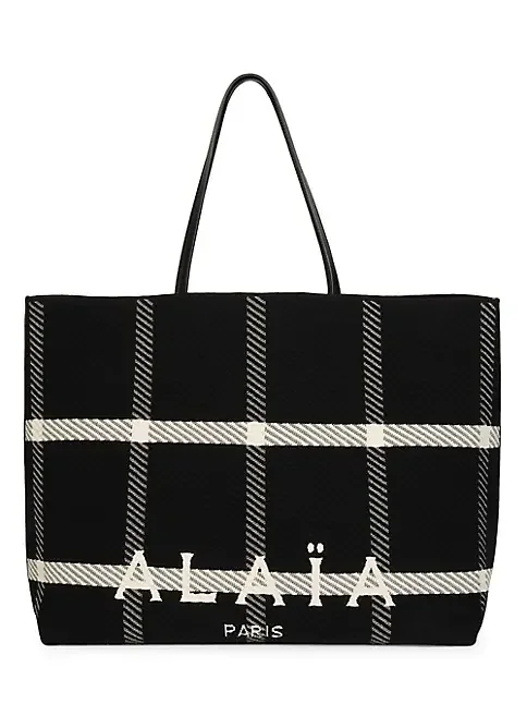 This large knit tote from Alaïa is designed with a check pattern and an oversized logo print.Dual shoulder strapsOpen topInterior zip pocketViscose/polyester/polyamide/elastaneMade in Italy