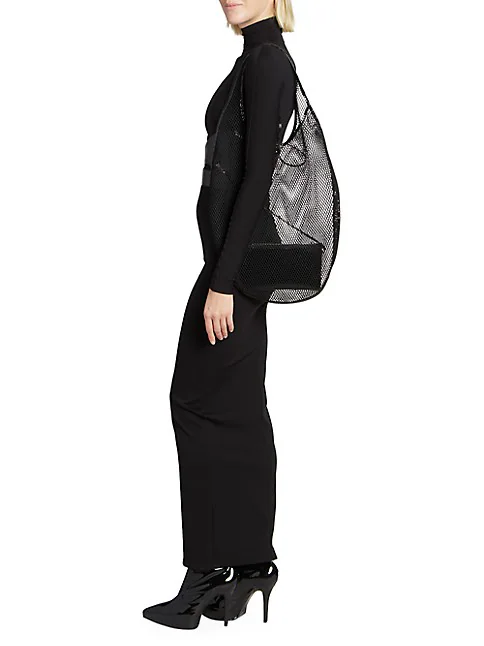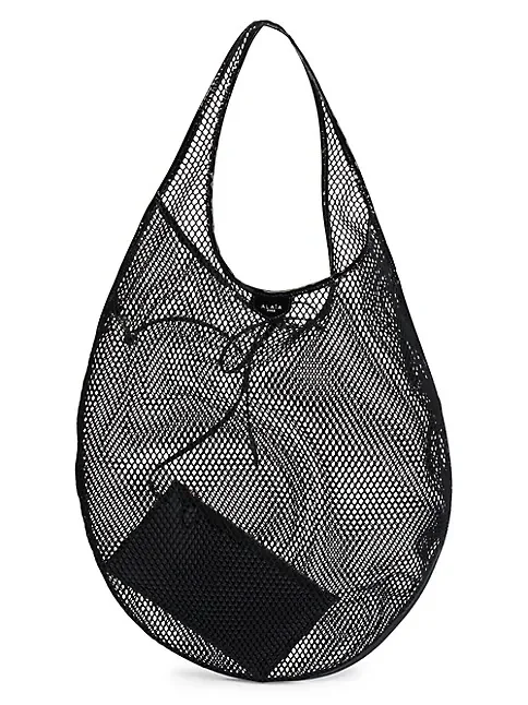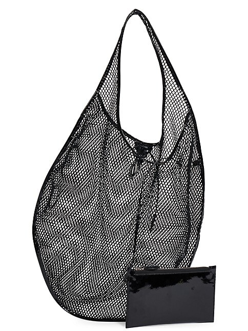 Crafted of mesh, this shopper tote bag from Alaïa is finished with patent leather trim and a separate zip pouch.Top handleSeparate zip pouchTie closureNylonTrim: leatherImported
