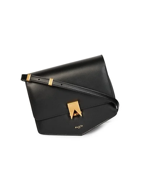 Made in Italy, AlaÏa's Le Papa shoulder bag is crafted of shiny box calfskin leather.Adjustable shoulder strapFlap with clasp closureBack card slotThree interior compartmentsInterior snap pocketCalfskinMade in Italy