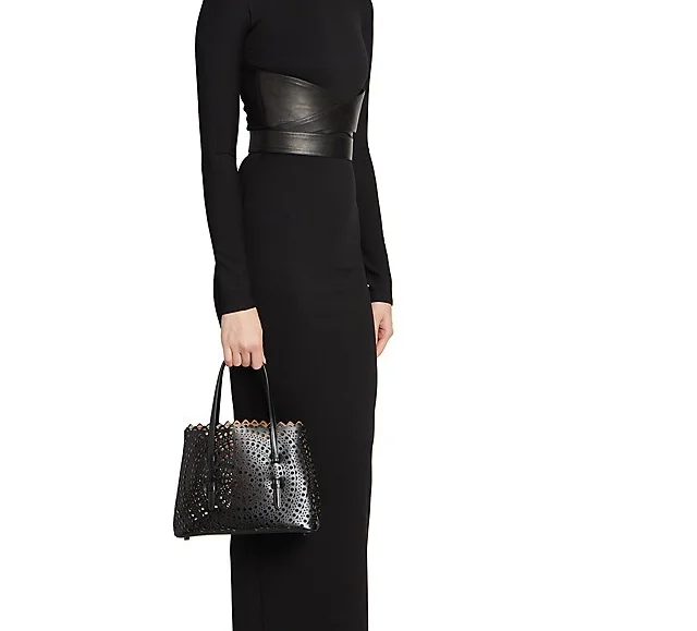 The Mina 25 satchel from Alaïa flaunts a Vienne laser-cut pattern inspired by precious lace and moucharabieh architectural openwork.