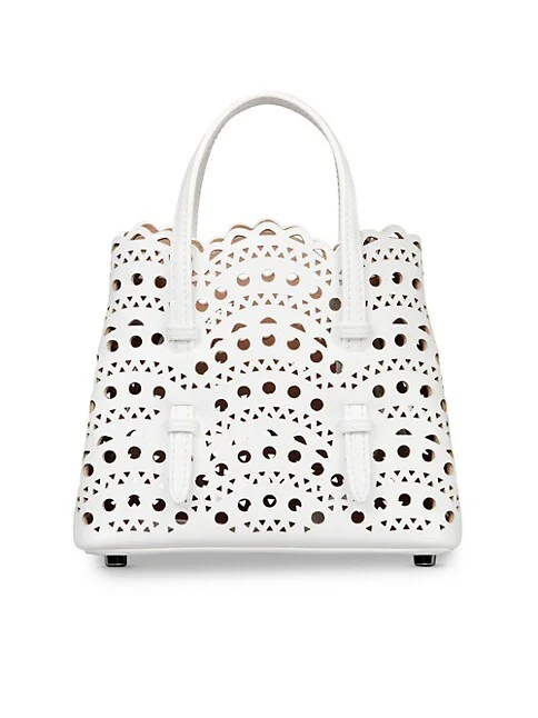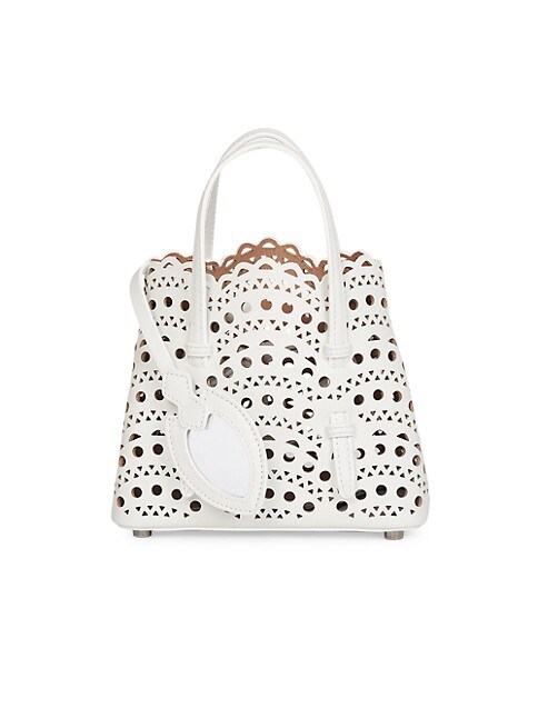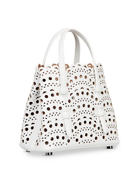 A miniature version of Alaïa's iconic leather tote with signature perforated detail and scalloped trim.