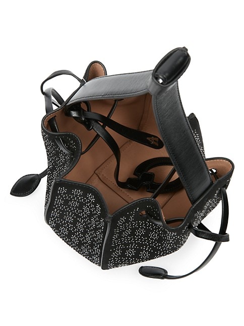 Elegant leather bucket bag features delicate studding in an elevated boho-luxe style.