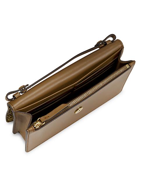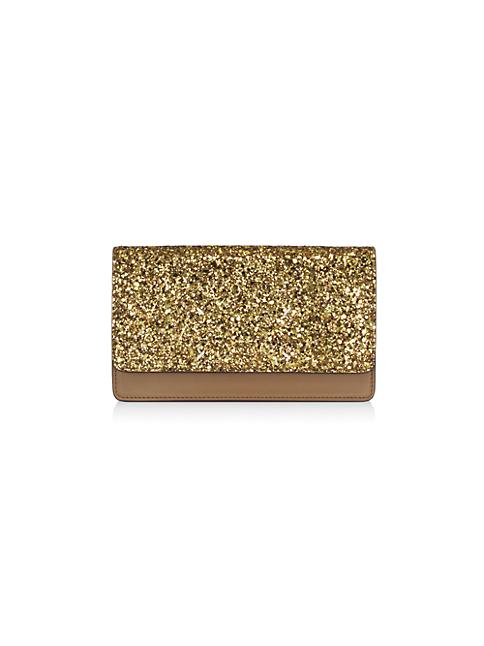 Crafted of buttery calf leather, this medium wallet from Maison Margiela is designed with a glittery top flap and a removable chain strap.