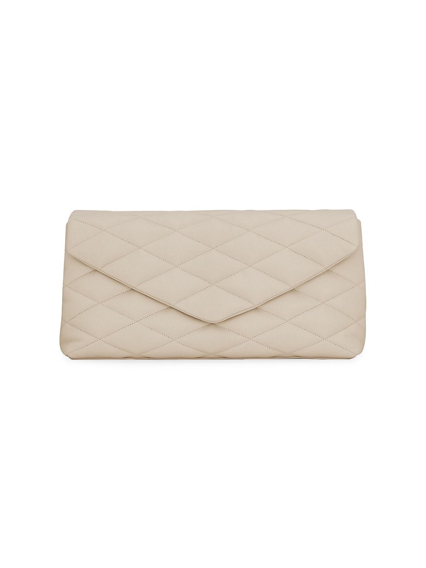 Rectangular envelope clutch flaunting a smooth quilted leather construction.