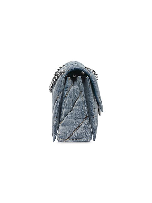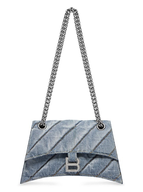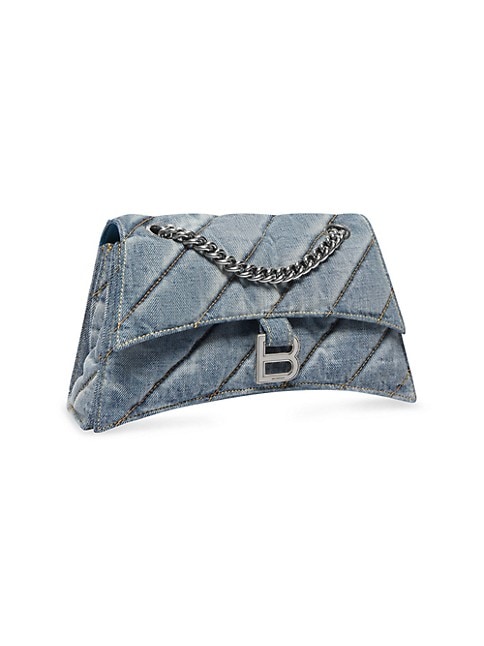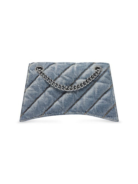 Crush small chain bag quilted in blue washed denim, aged-silver hardware.