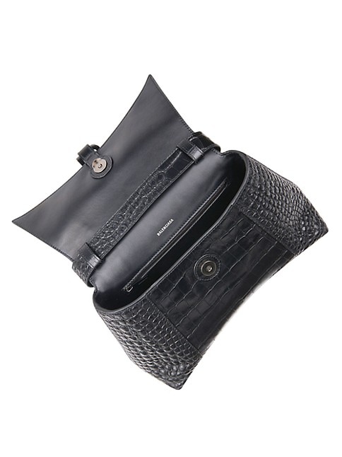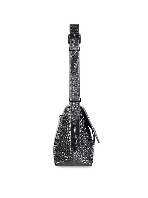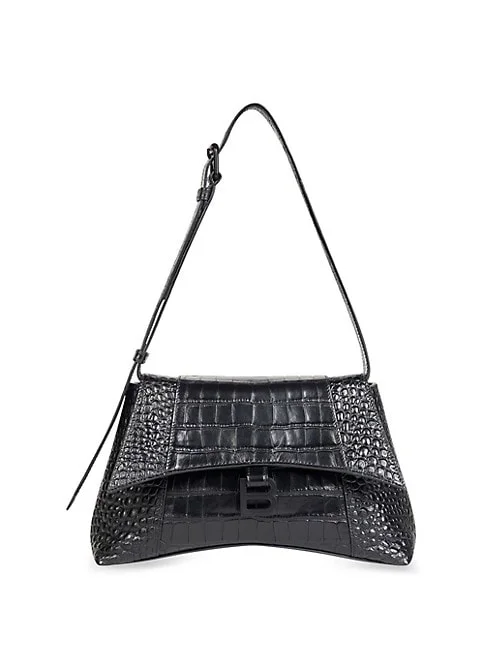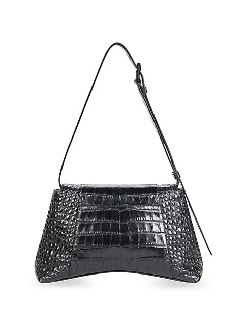 Downtown Small Shoulder Bag in black supple crocodile embossed calfskin and black matte hardware.