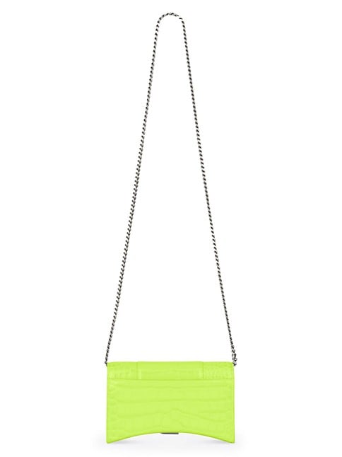 Hourglass Wallet With Chain in neon yellow shiny crocodile embossed calfskin, aged silver hardware.