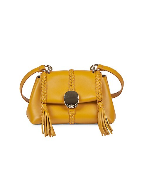 Chloé's mini Penelope shoulder bag features a rounded flap-front silhouette crafted of leather. Braided trim, modular straps, and a lock inspired by the brand's jewelry archive define this versatile style.