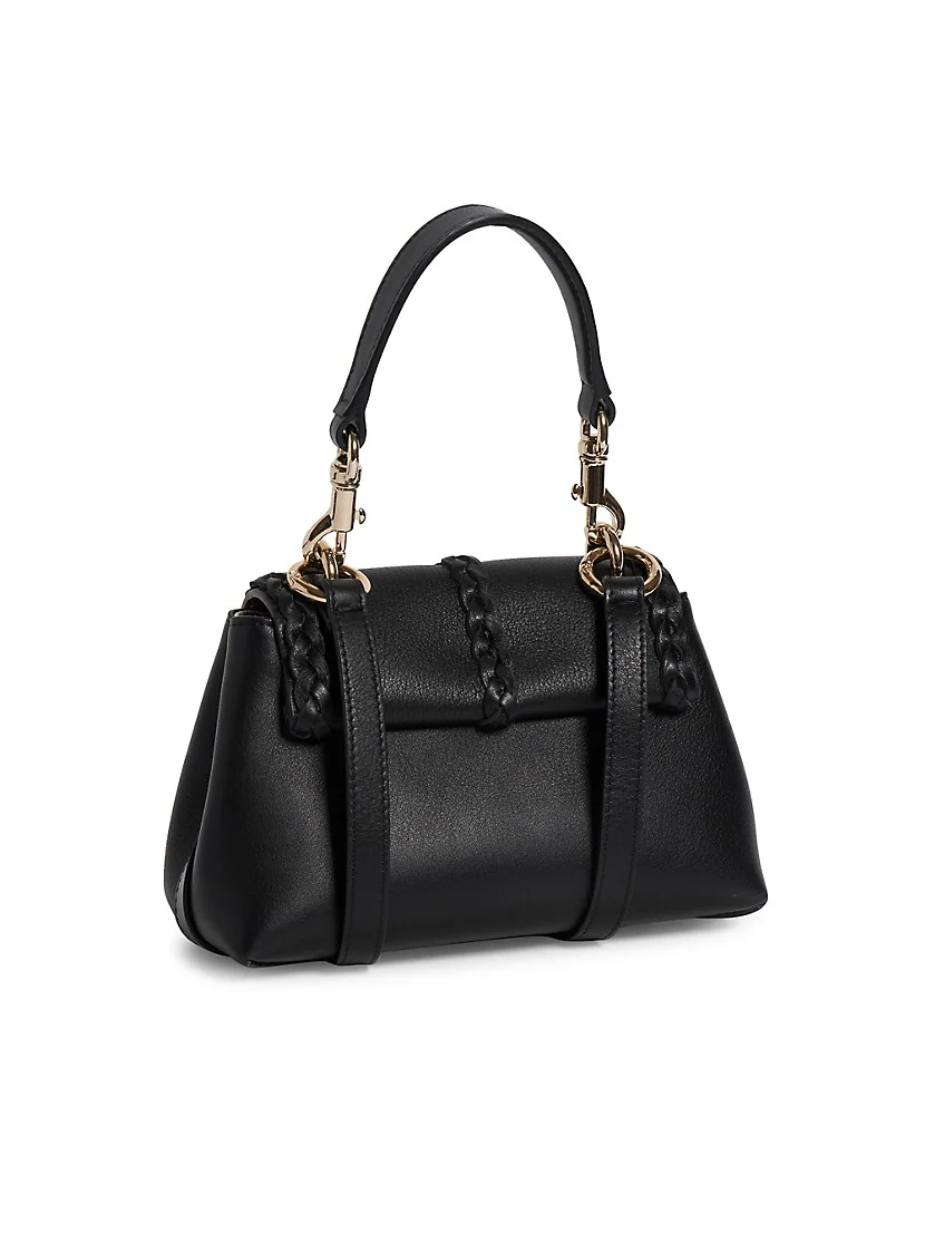 Removable shoulder strapRemovable top handleInterior: One slip pocketBraided leather trimFlap lock closureLeatherLinen liningMade in Italy