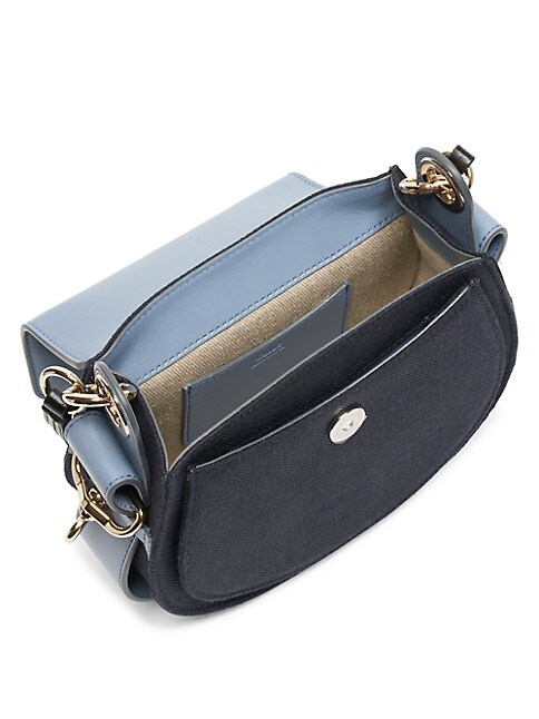 Chloé's Tess bag is crafted of colorblocked linen and leather in Italy. This equestrian-inspired piece is highlighted with signature logo-engraved hoop hardware.