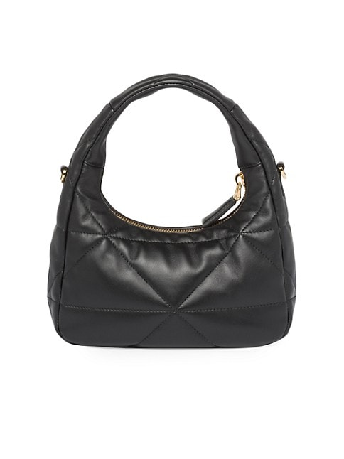 An unusual triangle motif creates three-dimensional plays on this nappa leather mini bag, reinterpreting the iconic Prada shape. Defined by a versatile allure, the style is completed by a zipper fastening and signature enameled-metal triangle logo.
