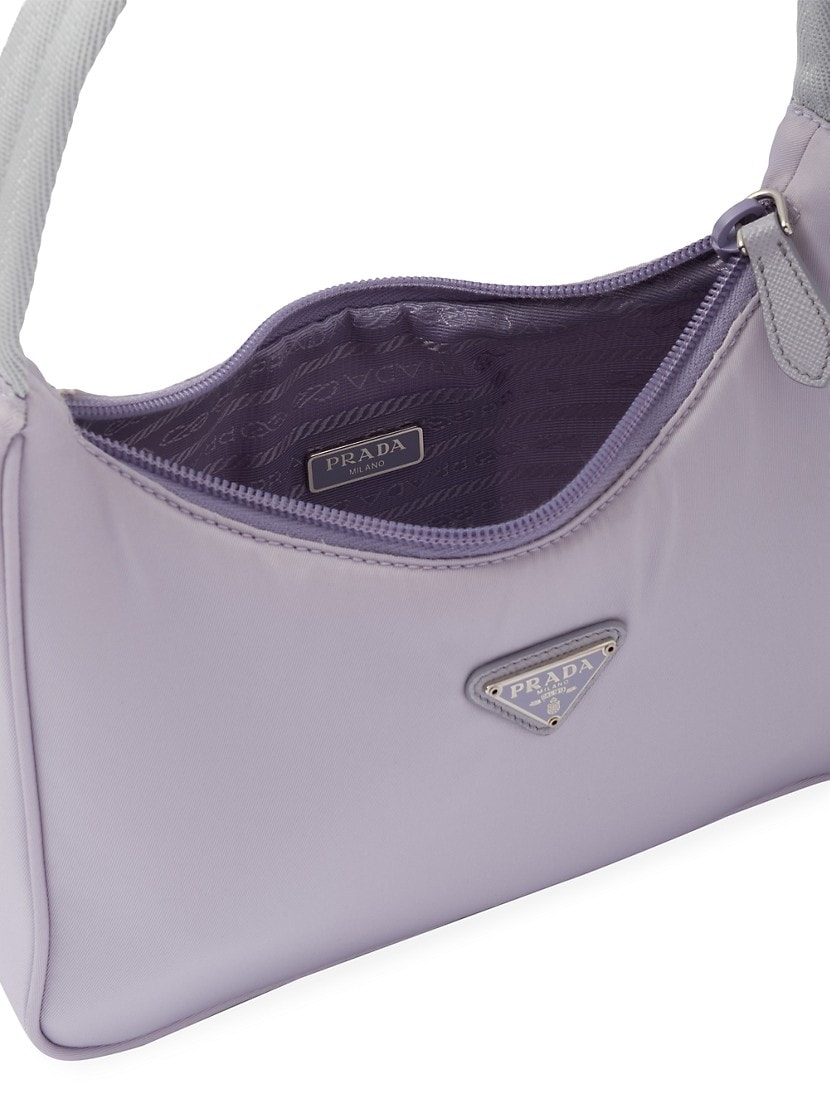 A new interpretation of an iconic Prada style, the Re-Edition 2000 mini-bag is made of innovative Re-Nylon, produced from recycled, purified plastic trash collected in the ocean, fishing nets, and textile waste fibers. The accessory with zipper closure and woven tape handle is decorated with the iconic enameled metal triangle logo.