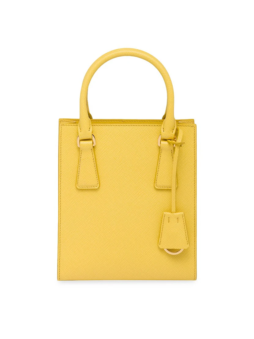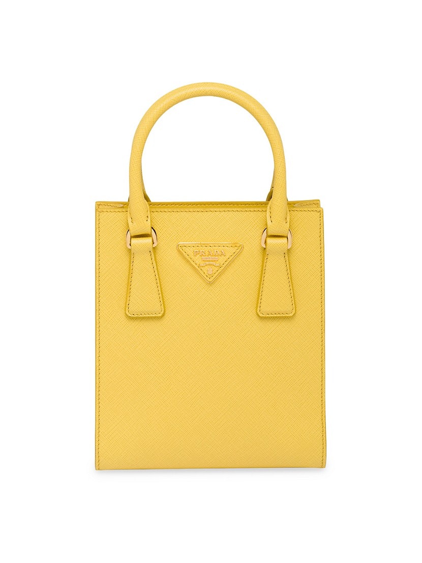 This sleek, modern handbag made of Prada's iconic Saffiano leather has a double handle and a detachable shoulder strap for versatile wear. Full of sophisticated, versatile allure, the accessory is decorated with the brand's distinctive triangle logo.