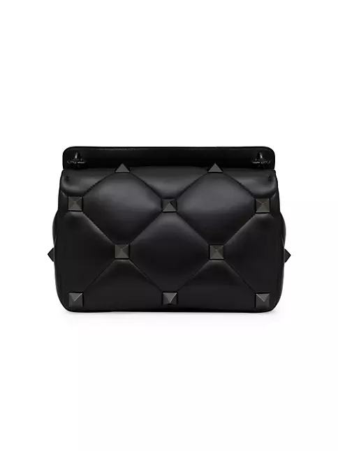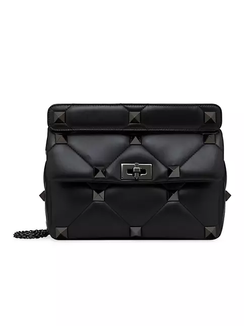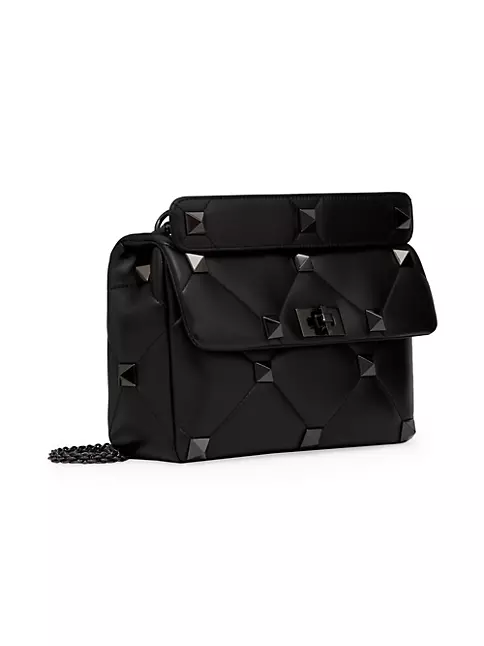 Large lambskin nappa Valentino Garavani Roman Stud The Shoulder Bag with chain and tone-on-tone studs. Quilted design, embellished with maxi studs. Equipped with a detachable handle and detachable sliding chain strap, this accessory can be worn as a crossbody/shoulder bag or carried by hand.
