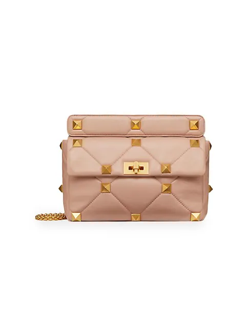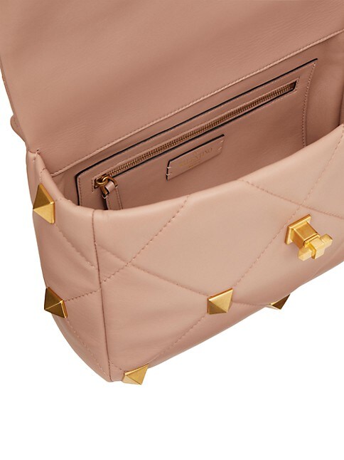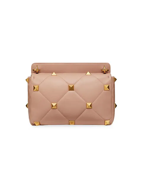 Large lambskin nappa Valentino Garavani Roman Stud. The Shoulder Bag with chain. Quilted construction and embellished with maxi studs. Equipped with a detachable handle and detachable sliding chain strap, this accessory can be worn as a crossbody/shoulder bag or carried by hand.