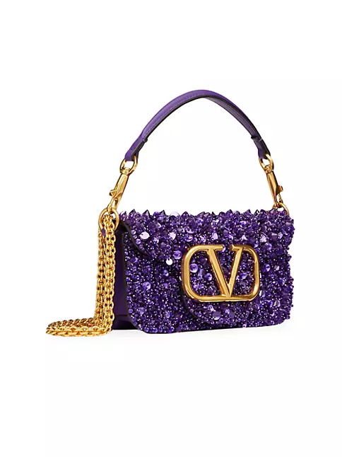 Locò Valentino Garavani small shoulder bag with 3D-effect embroidery, leather trim and VLogo Signature element. Equipped with a detachable sliding chain strap and a removable handle, this accessory can be worn as a crossbody/shoulder bag or carried as a handbag.