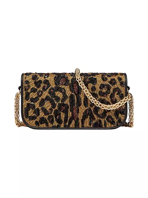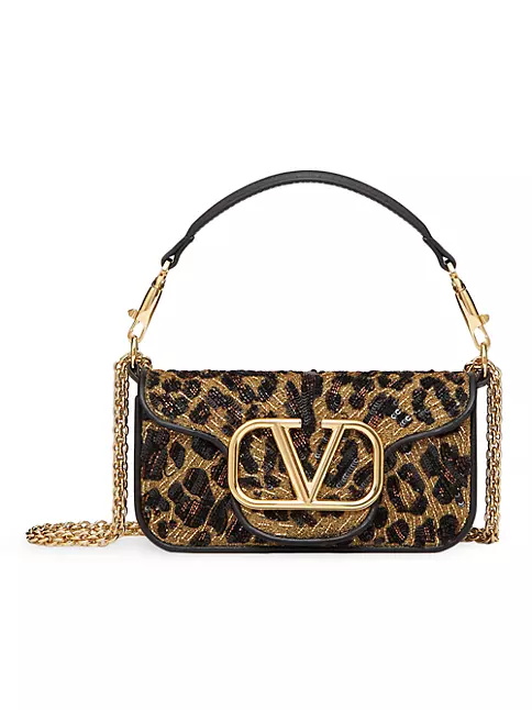 Locò Valentino Garavani small shoulder bag with animalier embroidery, leather trim and VLogo Signature element. Equipped with a detachable sliding chain strap and a removable handle, this accessory can be worn as a crossbody/shoulder bag or carried as a handbag.
