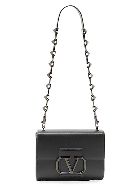 Accompanied by a Rockstud chain strap, Valentino Garavani's shoulder bag is punctuated with signature VLogo hardware. This Italian-made piece is crafted of rich calf leather.