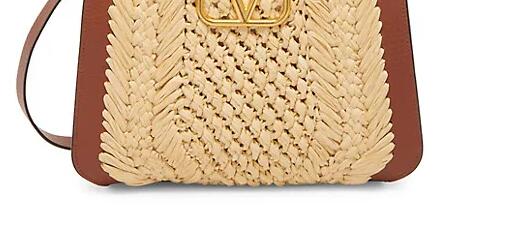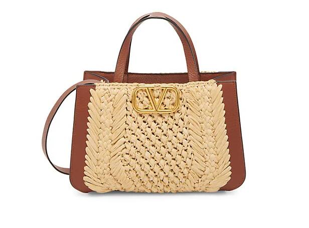 Crowned with signature VLogo hardware, Valentino Garavani's tote is crafted of woven raffia and grained calf leather.