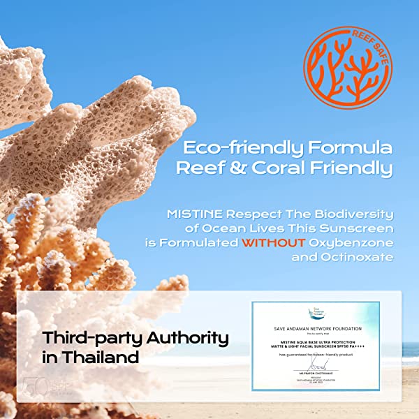【For All Skin Types】MISTINE sunscreen offers a weightless, non-sticky, refreshing matte finish without white cast. Completed skin irritation testing confirms safe use on sensitive skin and suitability for all skin types, from natural to mature skin conditions, and light to dark skin tones. 【Certified Reef Safe Formula】Made with compassion for the planet, animals and you, MISTINE facial sunscreen is formulated WITHOUT oxybenzone, octinoxate, fragrance, PABA, mineral oil or any animal derived ingredients to protect you, animial and our planet. 【Every Day Anywhere】Our lightweight formula is non-greasy and fast-absorbing, making it perfect for daily use. Its waterproof properties ensure that you stay protected, even during activities involving water and heavy sweating. 【Your Skin But Well Treated】MISTINE sunscreen features skin anti-aging, hydrating, balancing benefits that help combat fine lines, wrinkles, and other signs of aging, leaving your skin with a youthful and flawless matte appearance. Protect your skin and maintain its health and beauty with our high-performance sunscreen. 【The Sunscreen You Looking For】As the best selling sunscreen in Thailand, MISTINE's sunscreen is the ultimate solution for all your sun protection needs. This chemical and physical combination facial sunscreen, with SPF 50+ PA++++, provides superior protection against not only harmful UVA & UVB rays but also HEV rays, keeping your skin safe and healthy. Anti-aging & Hydration Sunscreen Bundle for a great price.