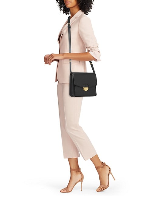 Made in Italy, Proenza Schouler's Dia Day bag is crafted of smooth leather adorned with a circular push-lock closure. This luxurious piece is accompanied by a removable shoulder strap.